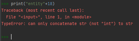 정수가 문자열로 선언되면 출력에서 "entity"+ str ("18") = "entity18"을 모두 연결할 수 있습니다 .