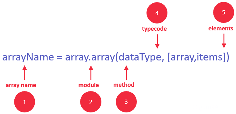 위의 코드는 정수 형식을 갖는 배열을 만듭니다. 문자 'd'는 형식 코드입니다.