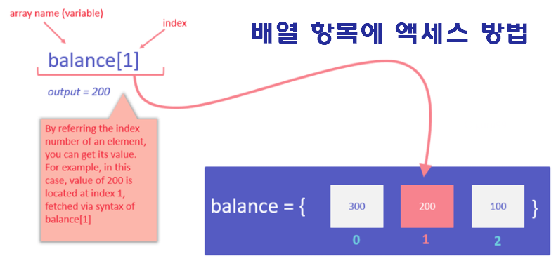 다음 이미지는 인덱스별로 배열 항목에 액세스하는 기본 개념을 보여 줍니다.