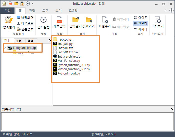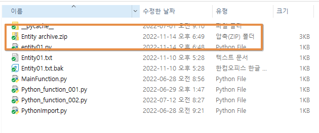 "Test_Entity01.zip" 파일을 두 번 클릭하면 다른 창이 열리고 여기에 포함된 파일이 표시됩니다.